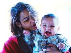 Suad Al-Tayyeb. Palestinian refugee living in Damascus. 35 years old, married and a mother of the one year-old child in the photo. She was detained on 10-6-2012 from her office where she works as interior design engineer. She was active in relief campaigns.